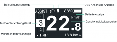 Bildschirm LCD Anzeige mit 5 Assistenzstufen
